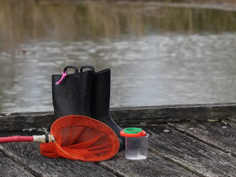 Nous te prêtons épuisettes, boîtes loupes, et fiches d'identification pour identifier cette faune aquatique.