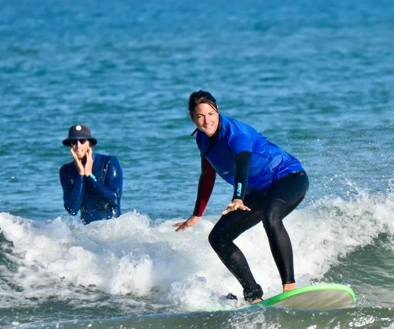 Cours de surf découverte . La pédagogie est ludique : on apprend en s’amusant !