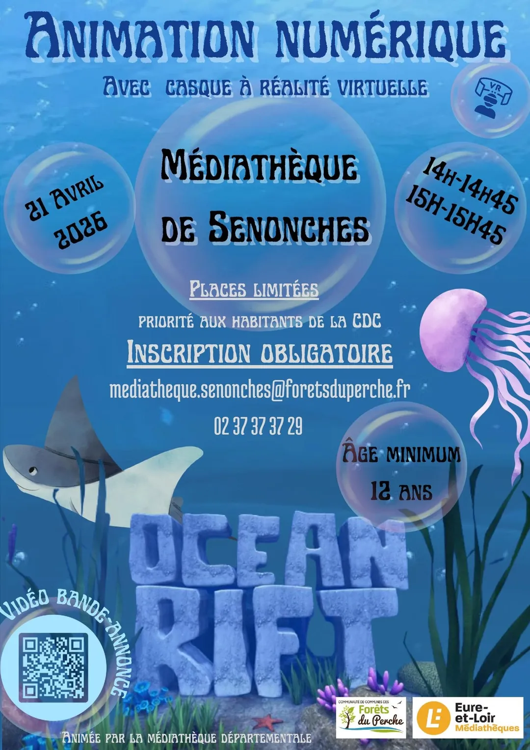 La médiathèque de Senonches à la plaisir de proposer aux plus jeunes une animation numérique avec casques de réalité virtuelle. Une aventure immersive autour du thème de l'eau. Inscription obligatoire, nombre de places limité sur les deux créneaux disponibles.