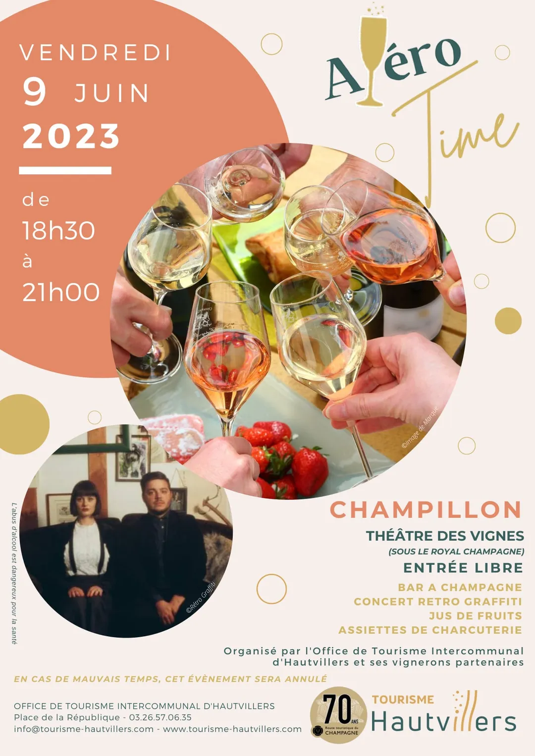L’Office de Tourisme d’Hautvillers, en partenariat avec ses vignerons partenaires et la commune d'Ambonnay organise l’Apéro ’Time le vendredi 5 juin 2026 de 18h30 à 21h00.