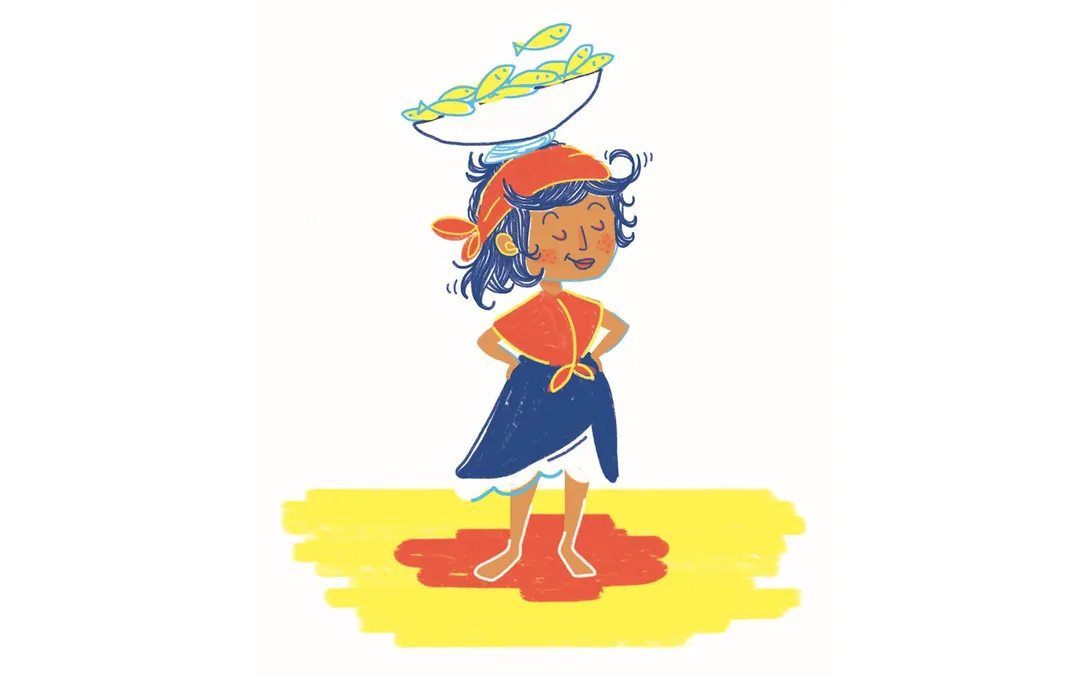 Arraina bizi! bizia!! Poisson frais ! crie une jeune femme avec un panier sur la tête.