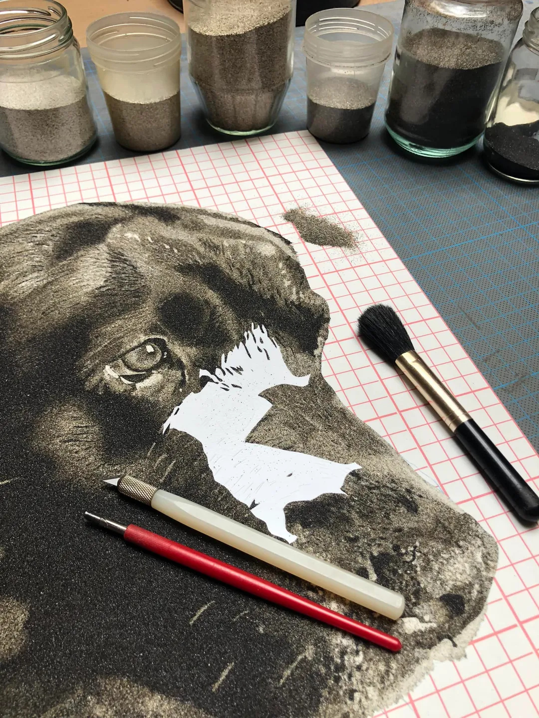 Des tableaux conçus avec des grains de sable c'est possible ! Assistez à une démonstration et pourquoi pas une initiation sur demande avec Virginie.