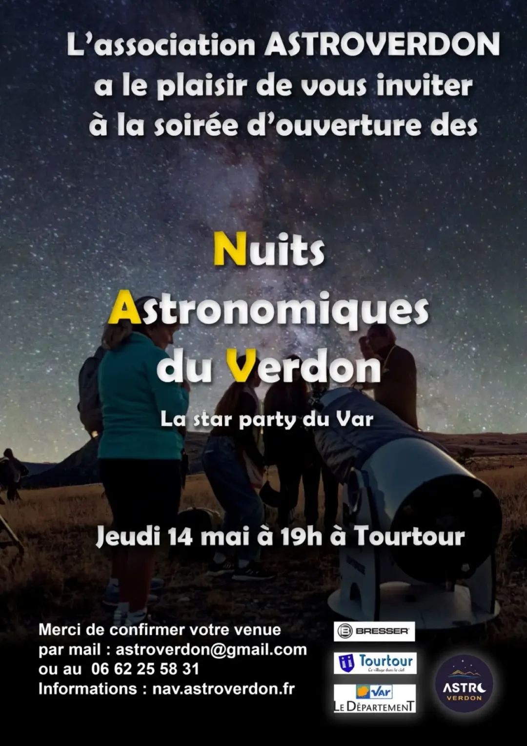 Bienvenue à la deuxième édition des Nuits Astronomiques du Verdon (les NAV), organisée par l'association ASTRO VERDON.