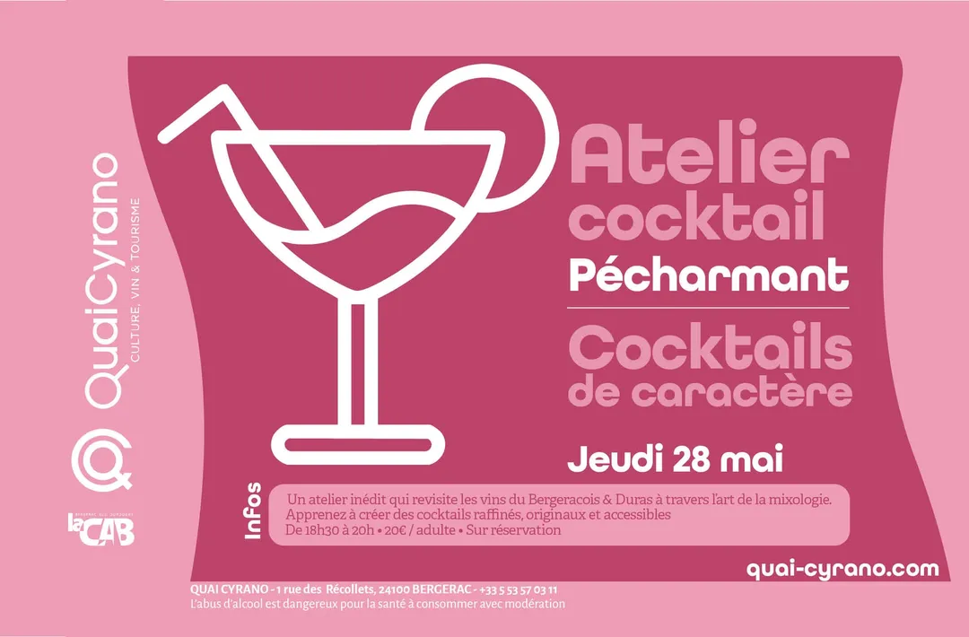 Découvrez un atelier inédit qui revisite les vins du Bergeracois & Duras à travers l’art de la mixologie. Plongez au cœur du vignoble avec un atelier dédié à l’appellation Pécharmant. Apprenez à créer des cocktails raffinés, originaux et accessibles, tout en comprenant les arômes et la personnalité de chaque vin. Un moment convivial, créatif et gourmand pour explorer le vignoble autrement.