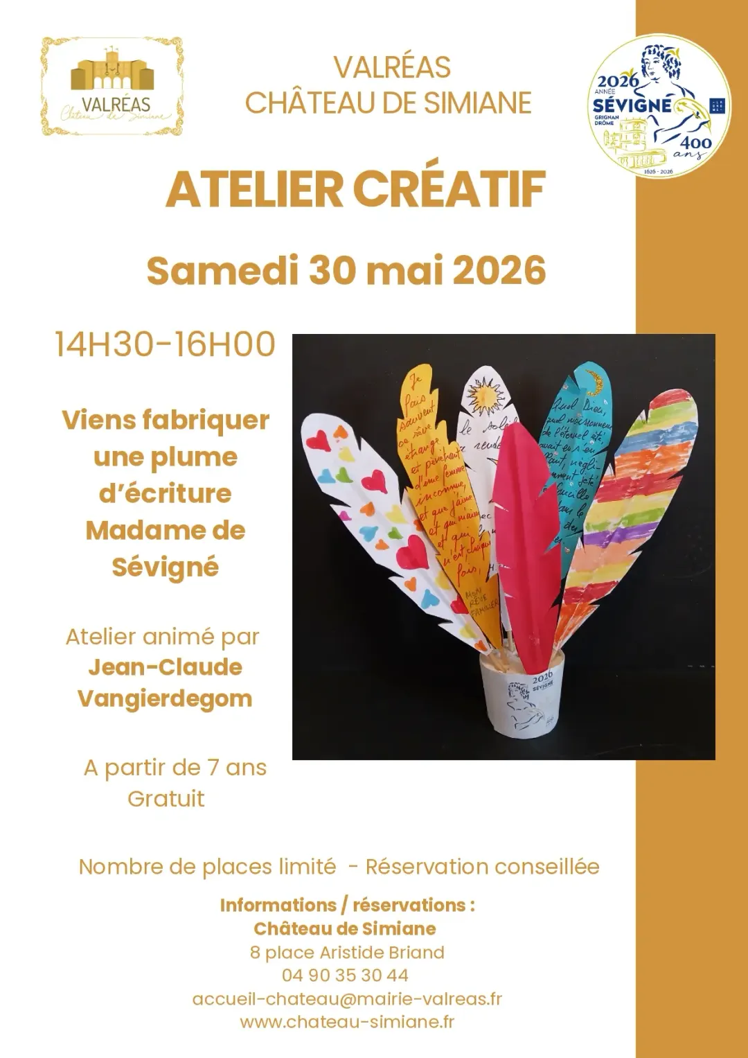 Ouvert à partir de 7 ans, cet atelier gratuit est proposé dans la continuité des animations organisées au Château de Simiane dans le cadre de l’Année Sévigné 2026, célébrant les 400 ans de la naissance de la marquise.