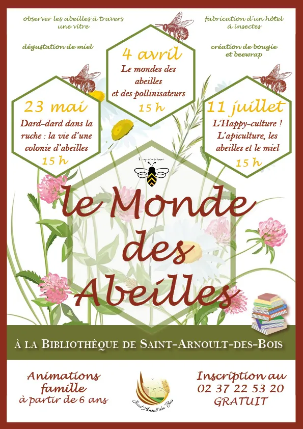 Venez découvrir 3 animations proposées à la Bibliothèque de Saint-Arnoult-des-Bois sur le thème du Monde des Abeilles.