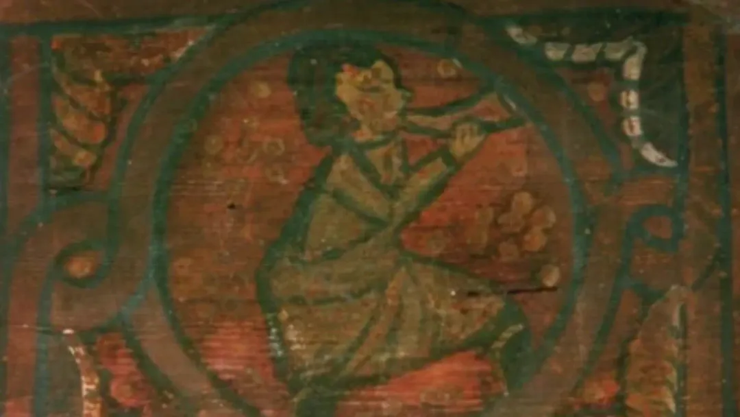 Parmi les thèmes représentés sur les plafonds peints du cloître, on retrouve celui de la musique à travers différents instruments : vièle, chalémie...