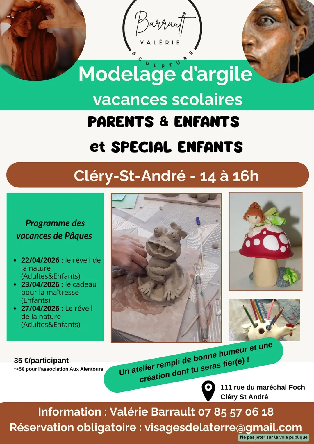 Durant 2 heures, adultes & enfants, venez partager un moment de pure créativité, la nature se réveille, et vous, quel animal ou végétal souhaitez vous faire naître dans vos mains ? Créez et repartez avec votre statue et de beaux souvenirs. Accompagnement personnalisé, matériel fourni.