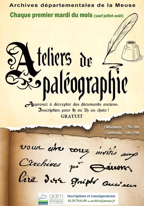 Les Archives de la Meuse proposent chaque mois un atelier de paléographie sur deux niveaux pour aider ceux qui souhaitent apprendre à lire et à comprendre des documents anciens et connaître le context