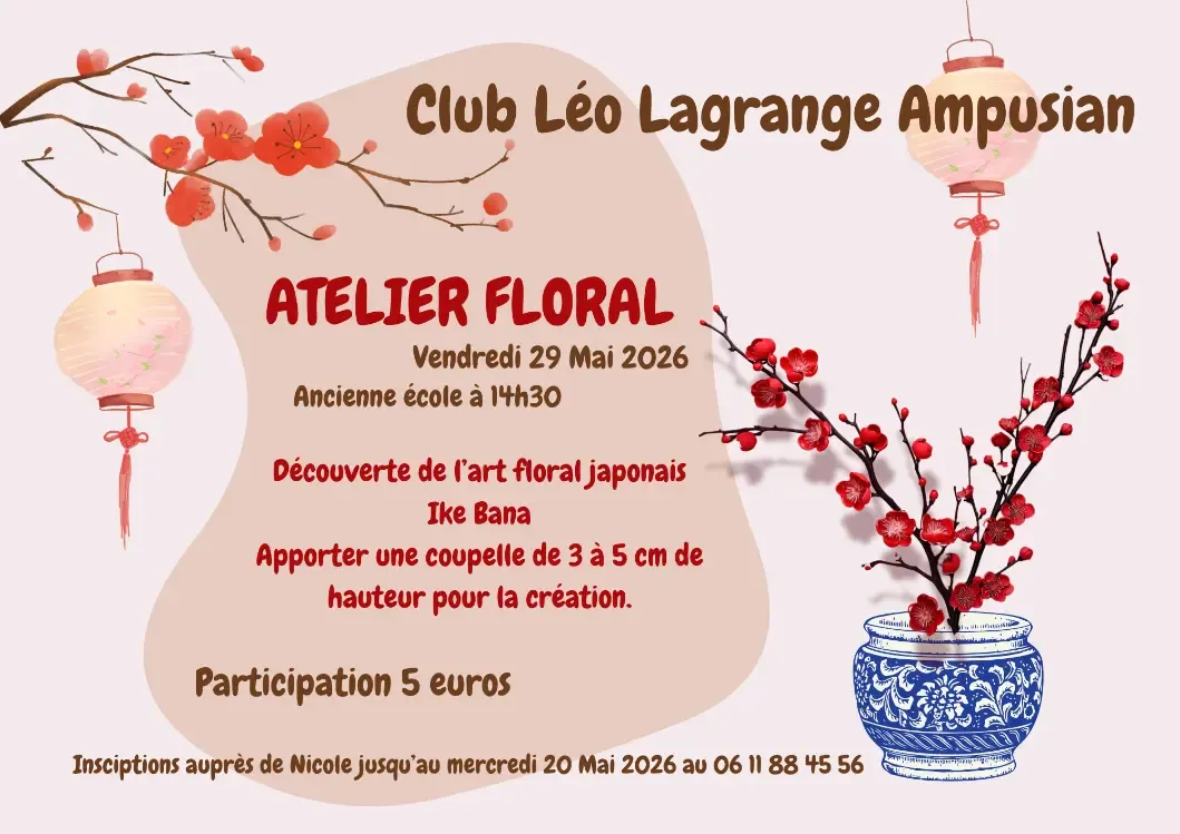 Le Club Léo Lagrange Ampusian vous propose de participer à un atelier floral dédié à la découverte de l’Ikebana, l’art traditionnel japonais de composition florale.