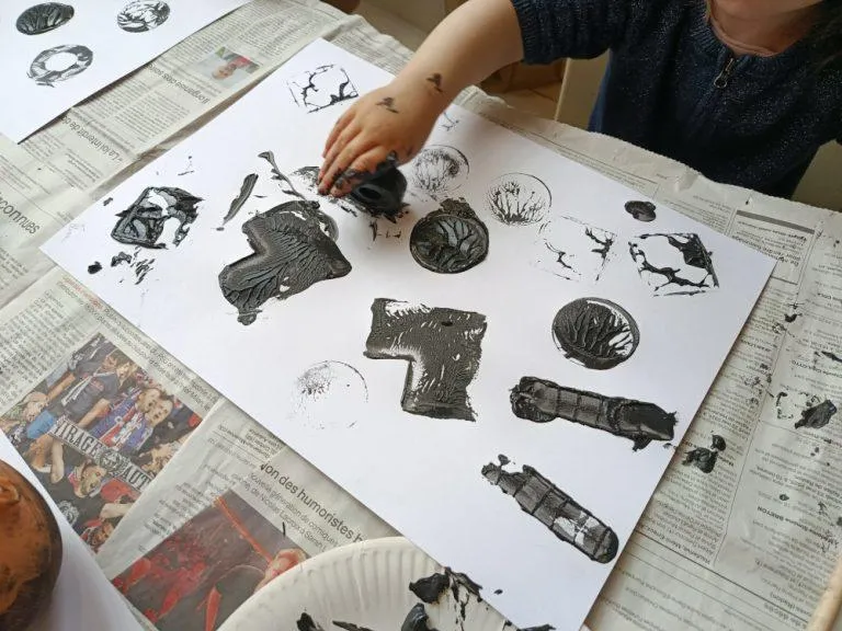Réalisation de motifs floraux à la peinture acrylique.