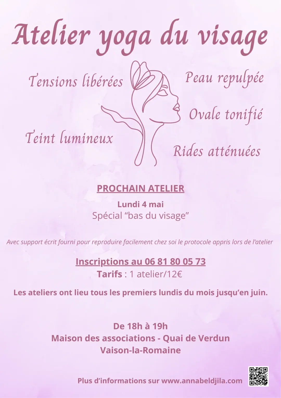 Retrouvez un visage serein, lumineux et tonifié avec le yoga du visage! Venez découvrir une routine du matin simple, efficace et agréable à réaliser. Support écrit fourni à la fin de l'atelier pour reproduire facilement le protocole appris.