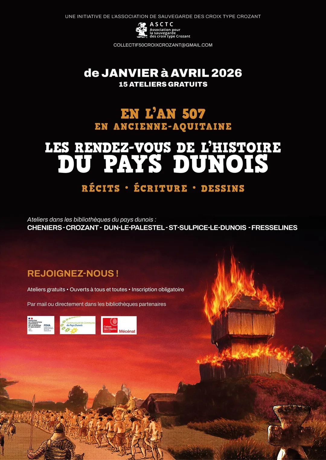 Dans le cadre d'une création de BD historique des ateliers gratuits ouverts à tous et à toutes, avec inscription obligatoire par mail : collectif50croixcrozant@gmail.com ou directement dans les bibliothèques concernées