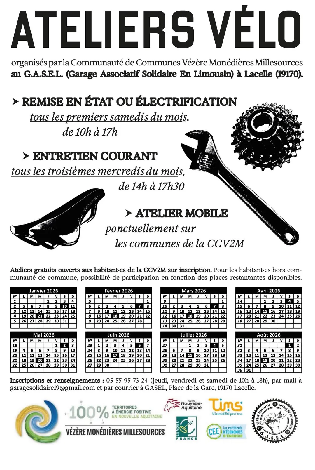 Ateliers vélo mis en place par la Communauté de Communes V2M et GASEL place de la gare à LACELLE et atelier mobile, ponctuellement sur les communes de La CCV2M.