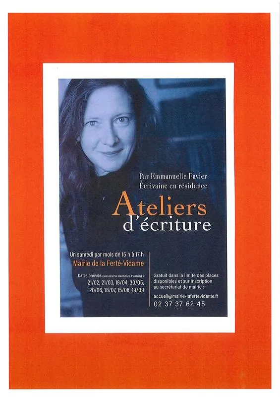 Ecrivaine en résidence, Emmanuelle Favier, vous propose des ateliers d'écriture au sein de la mairie de la Ferté Vidame. Pour tout renseignement et inscription, veuillez joindre la mairie de la Ferté