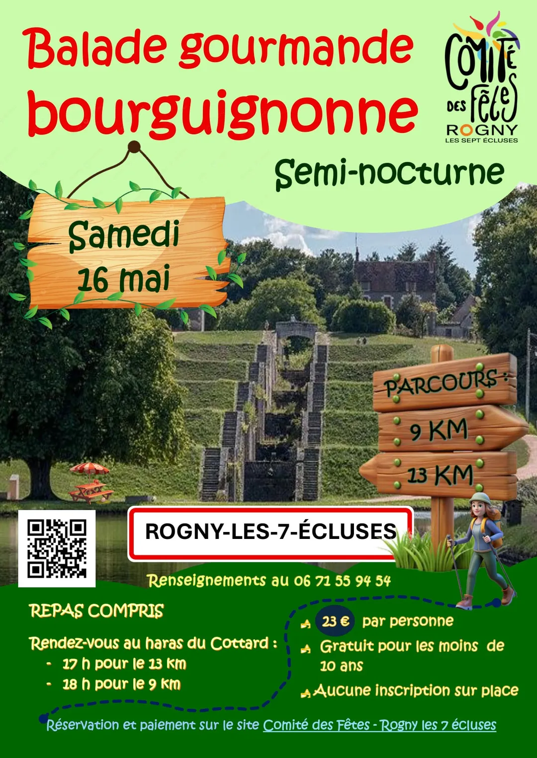 Le départ se fait par groupe de 20 personnes avec deux accompagnateurs.Balade gourmande semi-nocturne de 9 ou 13 km. Pour le 9 km départ à 18 h et pour le 13 km départ à 17 h