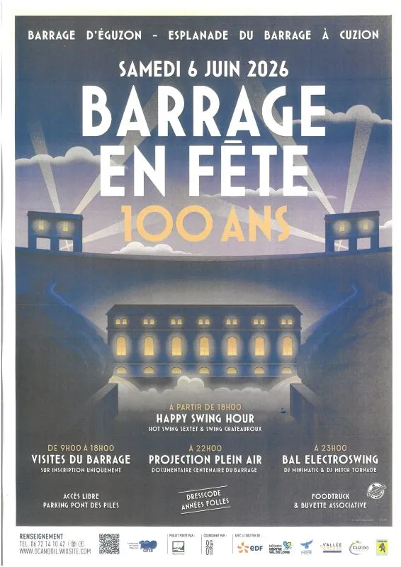 Le Barrage d'Eguzon fête ses 100 ans, le Syndicat Mixte du Lac avec l'association OC and OÏL vous invitent au pied du barrage pour une journée pas comme les autres, afin de marquer le coup de manière originale, conviviale et festive.