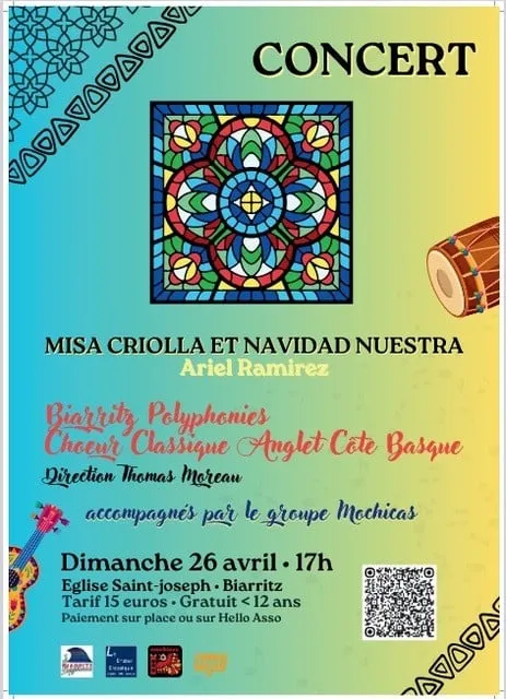Les chorales "Biarritz Polyphonies" et « Le Chœur Classique d'Anglet Cote Basque" accompagnées par le groupe Mochicas, chantent la Misa Criolla et Navidad Nuestras d'Ariel RAMIREZ sous la direction du chef de chœur Thomas MOREAU