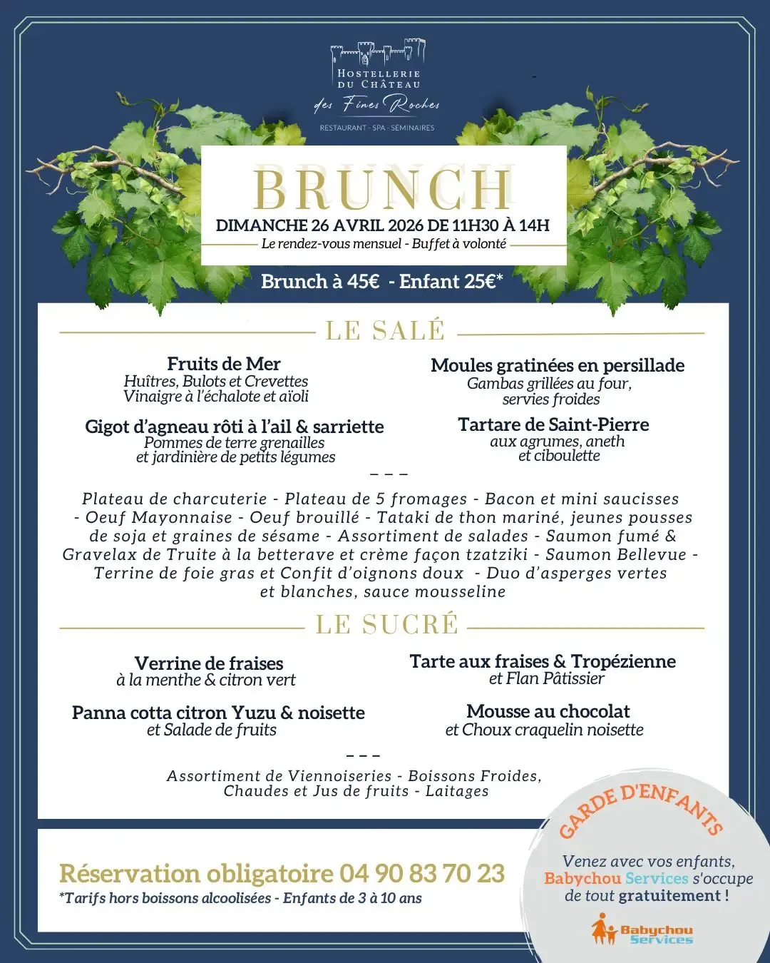 Et si dimanche vous veniez bruncher au restaurant de l'Hostellerie du Château Fines Roches ?