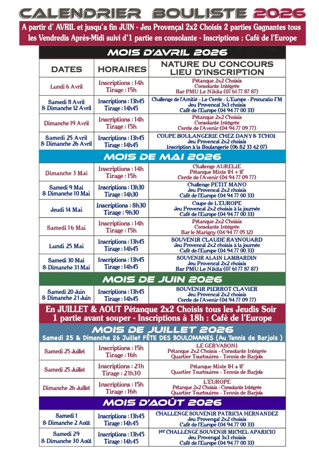 Inscription à 13h45, tirage à 14h45 au café de l'Europe