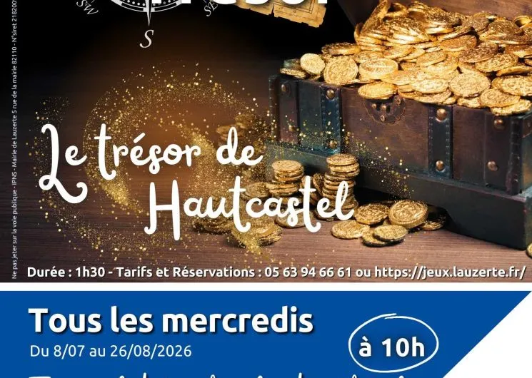 Chasse au trésor : le trésor de Hautcastel Le Comte de Toulouse rêve d’ériger un château sur l’éperon rocheux de Lauzerte afin de protéger ses terres. Mais pour convaincre les seigneurs de Hautcastel, il lui faut rassembler un trésor digne de ce nom… À vous de l’aider ! Partez à l’aventure dans la cité médiévale et relevez 10 épreuves pour retrouver les pièces du trésor. En équipe, explorez les ruelles, découvrez les secrets du patrimoine de Lauzerte et amusez-vous en famille ou entre amis. Ludique et enrichissant – récompense à la clé !