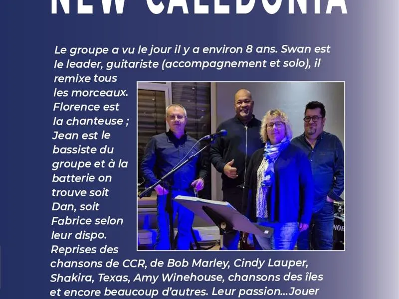 Venez passer un moment musical avec le groupe New Caledonia dans une ambiance chaleureuse et rythmée.