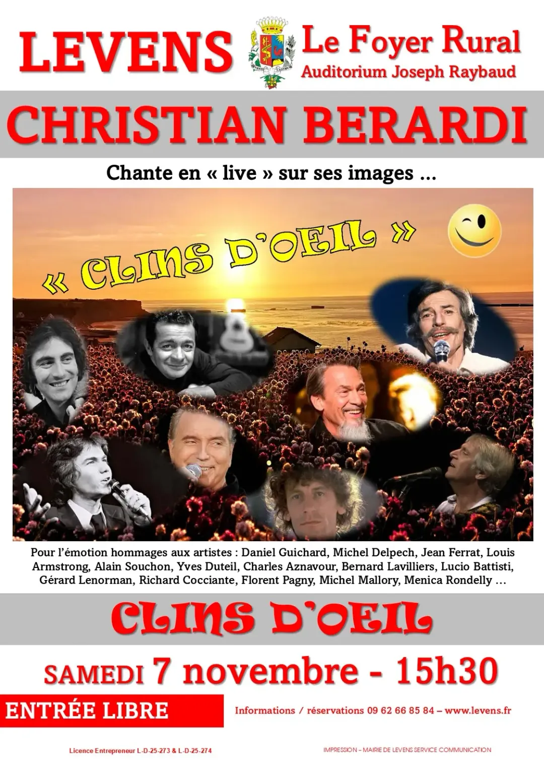 hommages aux artistes : Daniel Guichard, Michel Delpech, Jean Ferrat, Louis Armstrong, Alain Souchon, Yves Duteil, Charles Aznavour, Bernard Lavilliers, Lucio Battisti, Gérard Lenorman, Richard Cocciante, Florent Pagny, Michel Mallory, Menica Rondelly …