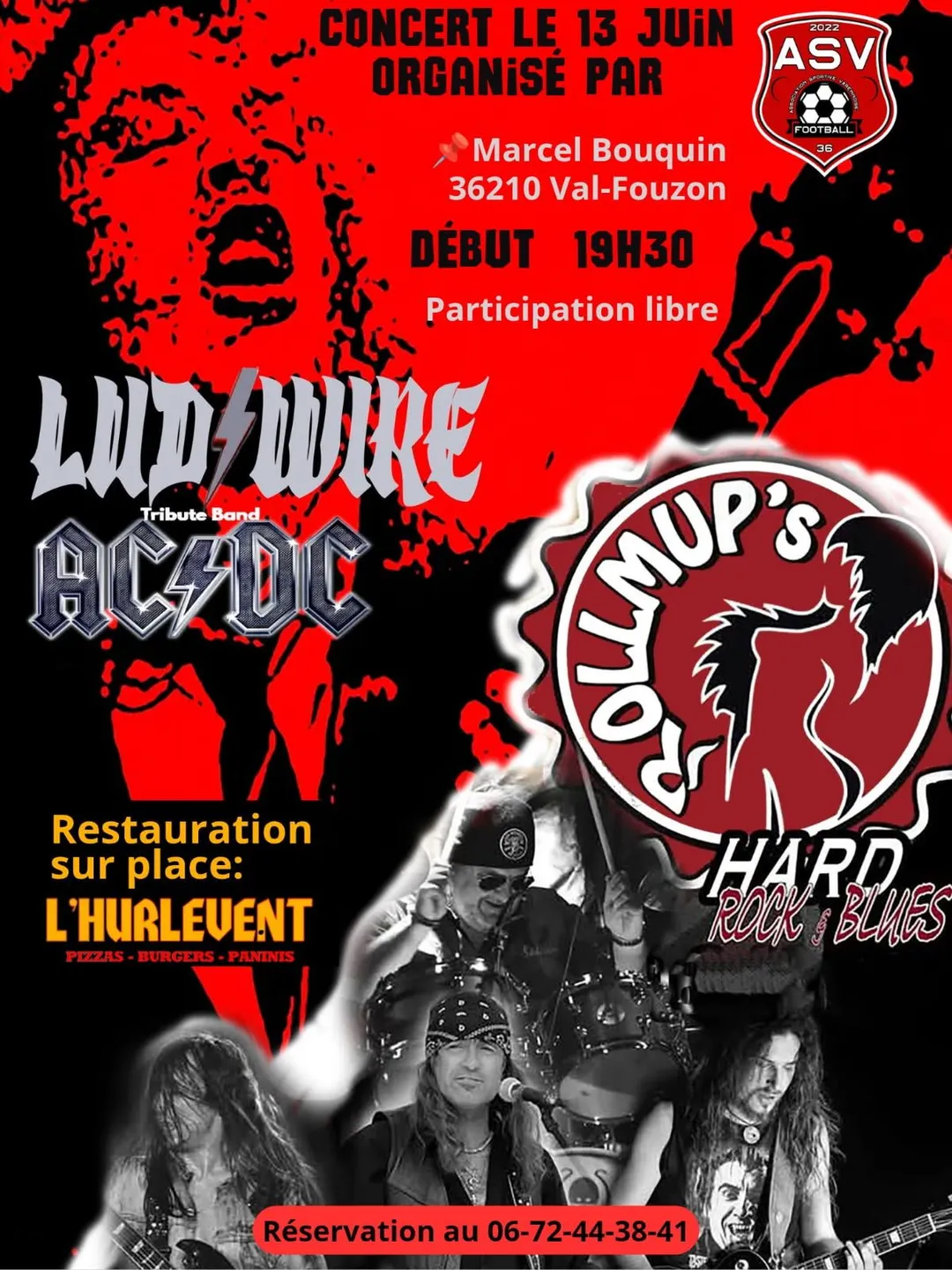 Concert au stade Marcel Bouquin de Varennes/Fouzon. Concert de Rollmup's, hard rock & blues et LudWire et ACDC Tribute Band. Restauration sur place : l'Hurlevent (pizzas, burgers, paninis). Participation libre. Réservations au 06 72 44 38 41