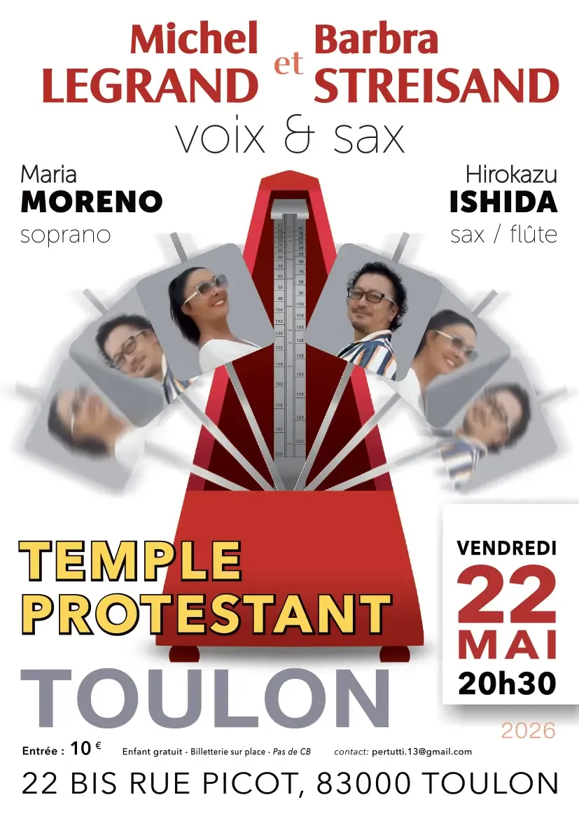 Concert par la soprane Maria Moreno et le saxophoniste Hirokazu Ishida avec les musiques de Michel Legrand et Barbara Streisand.