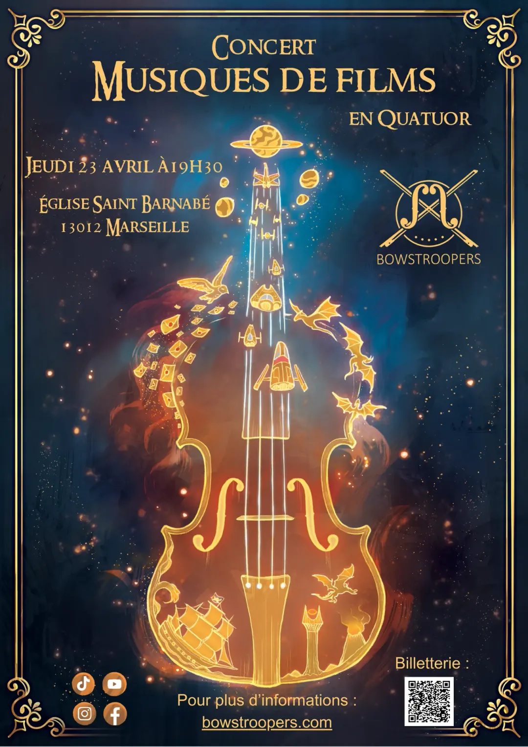 Concert de musiques de films avec des thèmes cultes de Star Wars, Harry Potter, Le Seigneur des Anneaux, Gladiator ou Pirates des Caraïbes et bien d'autres.
