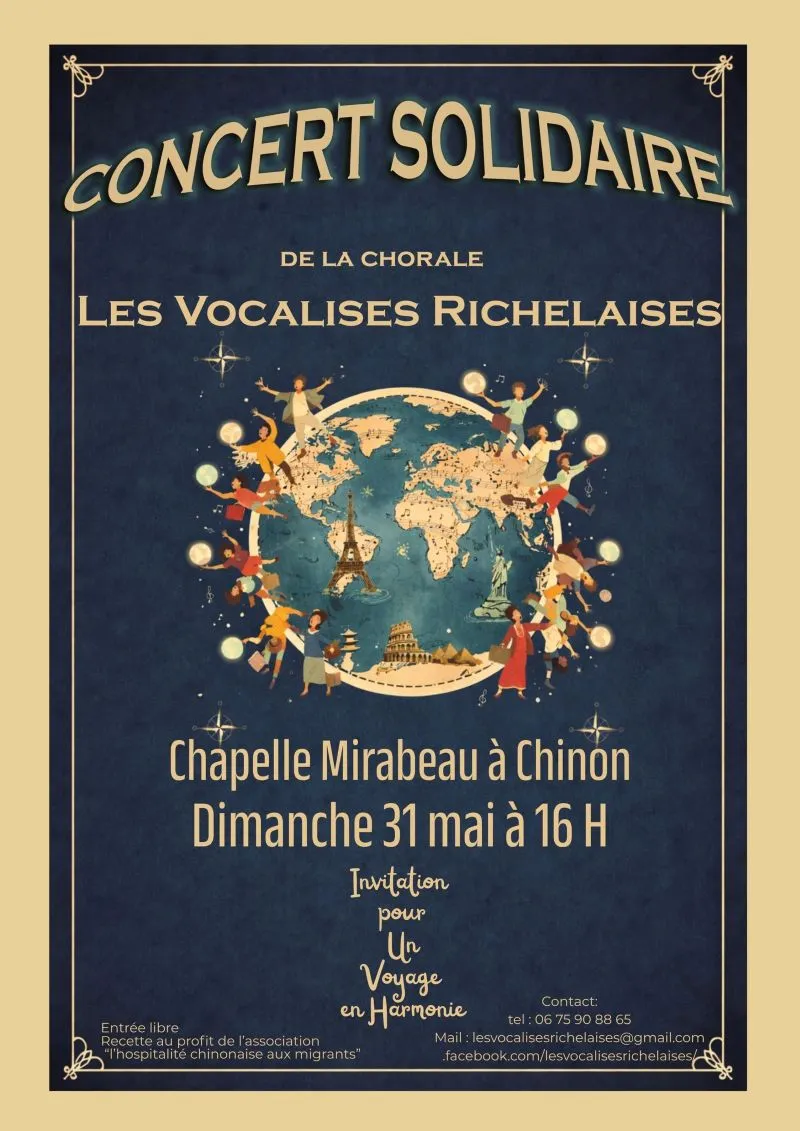 La chorale Les Vocalises Richelaises est heureuse de vous inviter à un concert exceptionnel placé sous le signe du partage et de la solidarité.