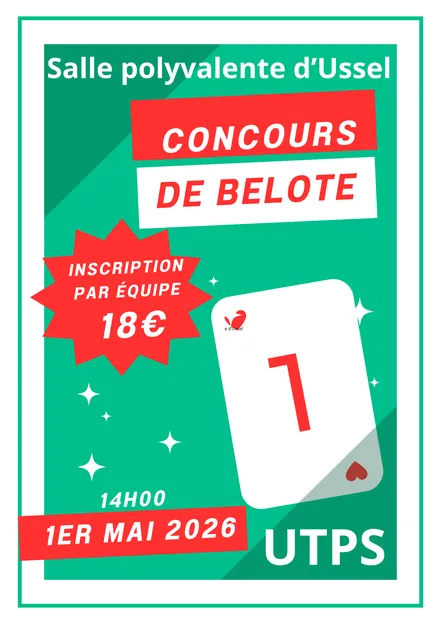 L'association "Un temps pour soi" organise un concours de belote à la salle polyvalente d'Ussel.