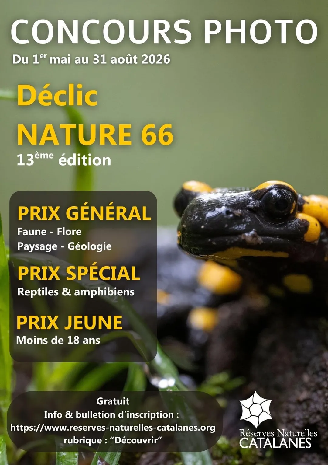 C'est la 13e édition du Déclic Nature 66! Concours photo avec un prix général Faune- Flore Paysage- Géologie / prix spécial reptiles & amphibiens / prix jeune moins de 18 ans