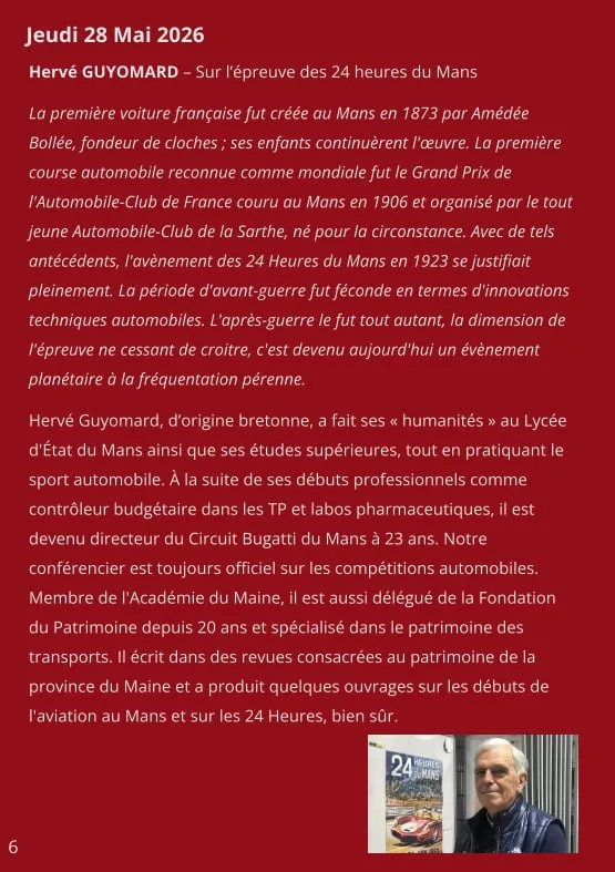 La première voiture française fut créée au Mans en 1873 par Amédée Bollée, fondeur de cloches ; ses enfants continuèrent l'œuvre. La première course automobile reconnue comme mondiale fut le Grand Prix de l'Automobile-Club de France couru au Mans en 1906 et organisé par le tout jeune Automobile-Club de la Sarthe, né pour la circonstance. Avec de tels antécédents, l'avènement des 24 Heures du Mans en 1923 se justifiait pleinement. La période d'avant-guerre fut féconde en termes d'innovations techniques automobiles. L'après-guerre le fut tout autant, la dimension de l'épreuve ne cessant de croitre, c'est devenu aujourd'hui un évènement planétaire à la fréquentation pérenne.