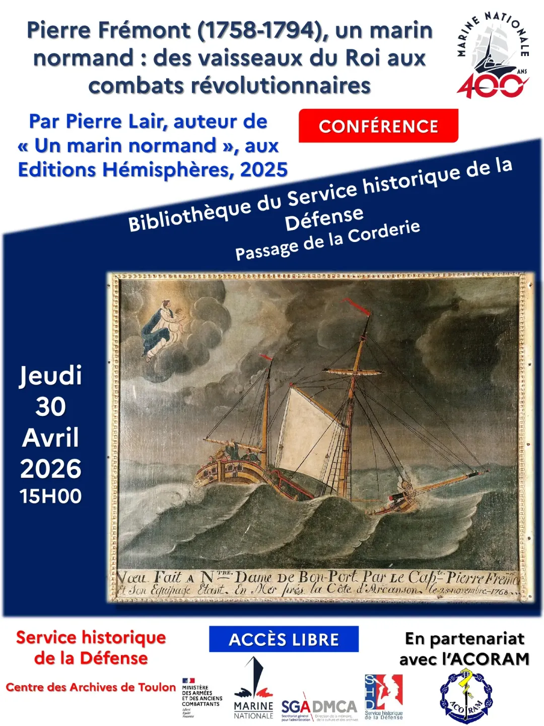 La conférence a lieu dans la bibliothèque de la Corderie (accès par l’extérieur de la base navale – passage de la Corderie face au parking de la place d’armes).
