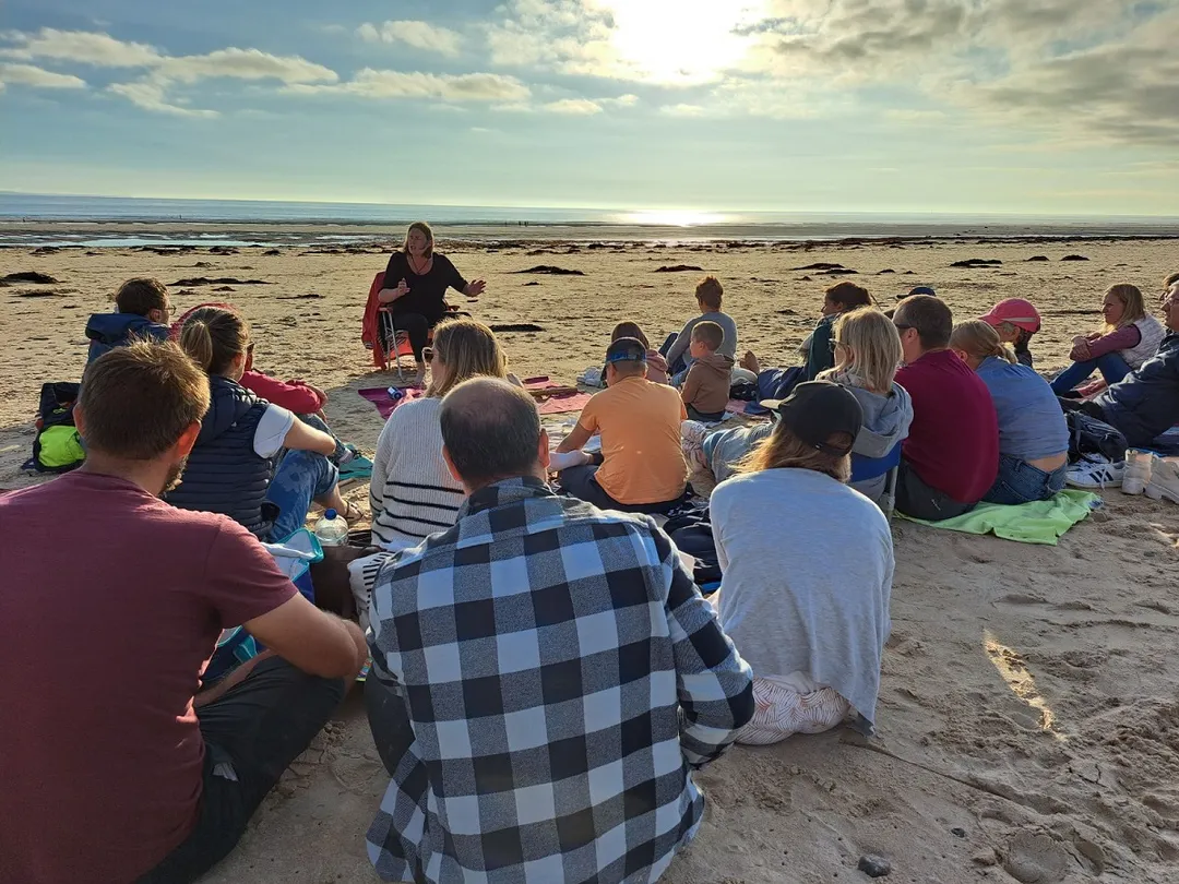 En soirée, face à la mer et assis sur le sable de la plage de Ravenoville, laissez vagabonder votre esprit au rythme des contes lus par Krystin. Profitez d'une vue sur la mer au crépuscule, et découvrez les histoires et légendes locales.