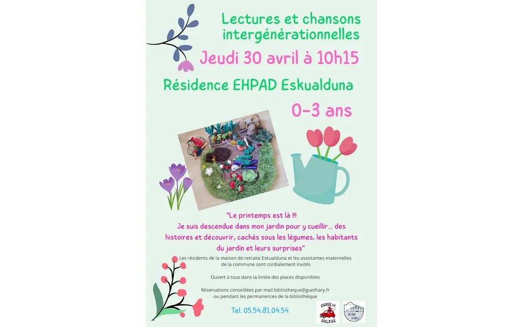 Animé par la conteuse Geneviève Allain, la médiathèque sort de ses murs pour quelques rendez-vous à la maison de retraite Eskualduna, ces rencontres sont suivies d’un gouter offert par la résidence.