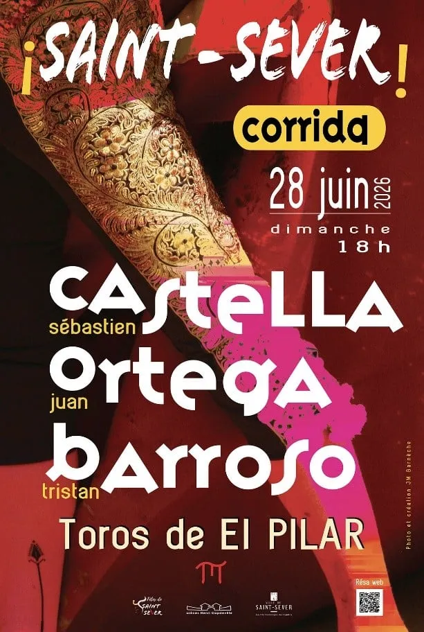 Dans le cadre des Fêtes de Saint-Jean, à Saint-Sever seront au paseo cette année Sébastien CASTELLA, Juan ORTEGA et Tristan BAROSSO face aux toros de El Pilar.