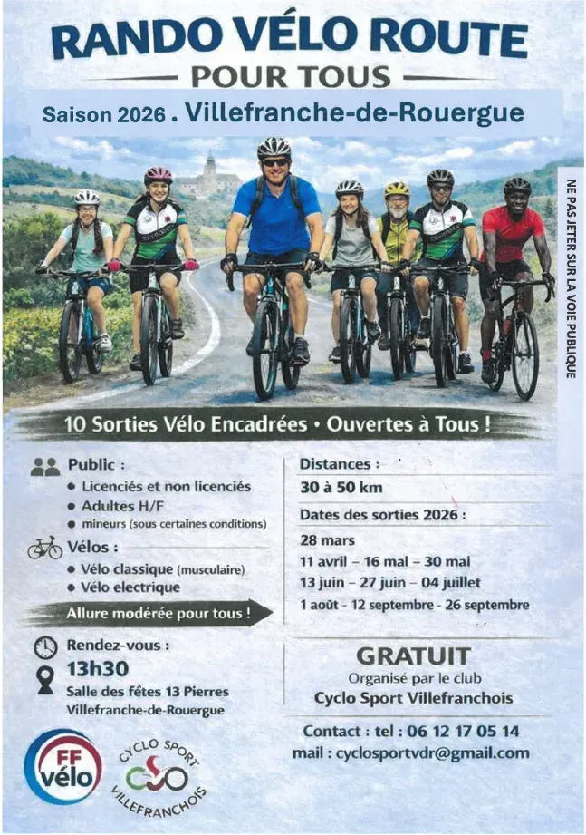 Le Cyclo Sport Villefranchois organise 10 sorties vélo encadrées pour tous : tous niveaux, tous publics en vélo musculaire classique ou en vélo électrique !