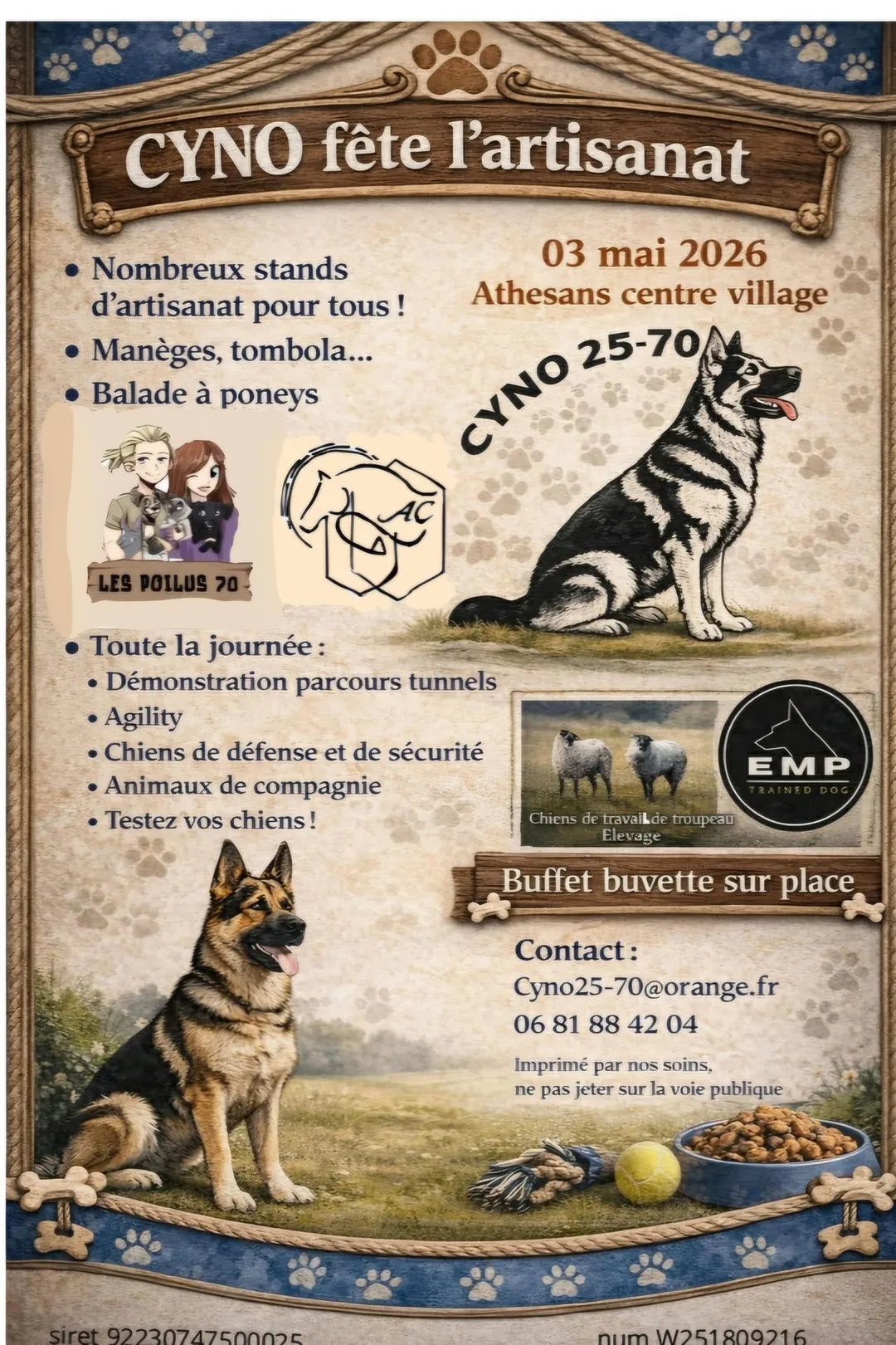 Cyno 25-70 organise une journée avec de nombreux stands d'artisanat, manèges mais également des démonstrations de parcours et d'agility pour vos chiens.