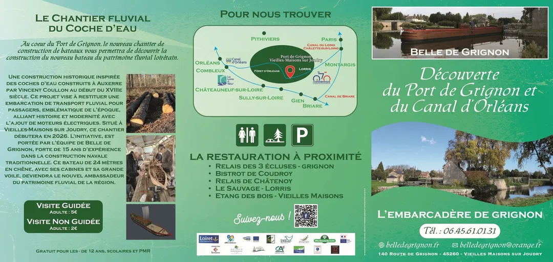 Découverte en barque avec un batelier, balades fluviales en barque sans batelier, ou à bord de la péniche "Belle de Grignon". Découvrez aussi en visite guidée ou non, le chantier fluvial du coche d'eau.