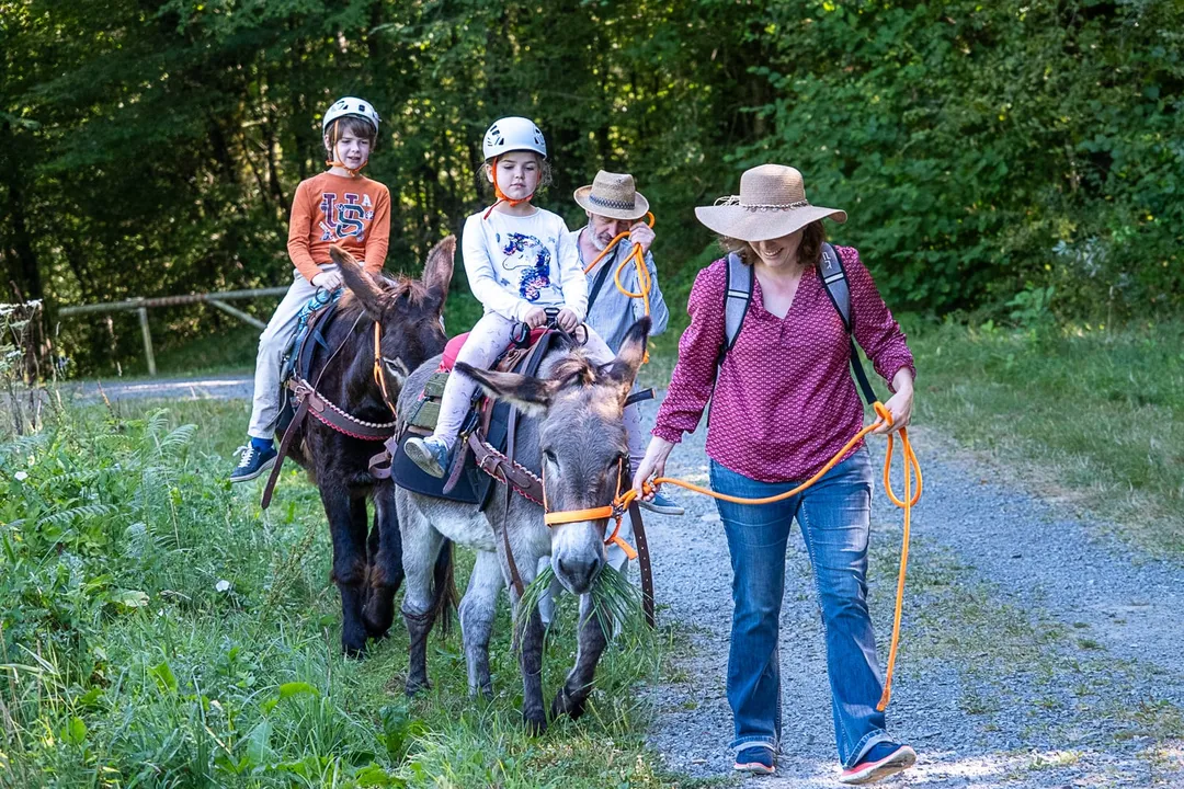 Nos sentiers de randonnée sont encore plus sympas à découvrir avec un âne que vous guiderez au licol et qui portera vos enfants ! Un beau moment de complicité en perspective ! Encadrement par un professionnel diplômé. Ouvert aux enfants à partir de 4 ans, accompagnés d'un adulte.