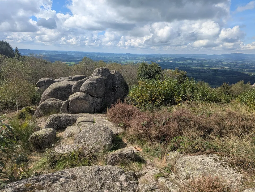 Ce site exceptionnel, culminant à 684 mètres, offre un panorama époustouflant sur le bocage environnant et, par temps clair, jusqu'à la chaîne des Puys.