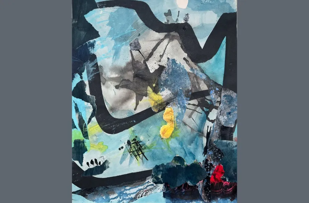 J’associe acrylique, huile, encre, pigments et collages de papier Japon, appliqués au spalter, à la brosse ou au couteau. Le geste, parfois projeté, parfois retenu, dialogue avec des aplats plus subtils, invitant l’œil à circuler, à se perdre et à rêver.