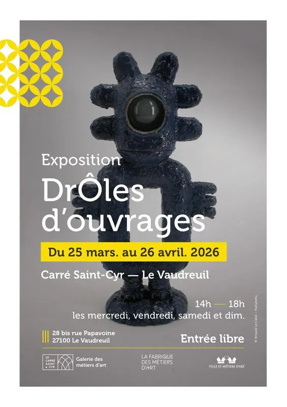 Du 25 mars au 26 avril 2026, le Carré Saint-Cyr accueille l’exposition Drôles d’ouvrages, rassemblant 15 artisans d’art et plus de 200 pièces originales. Bois, céramique, verre, métal, textile ou matériaux détournés deviennent des terrains de jeu et d’expérimentation. Chaque créateur propose des objets singuliers, hybrides ou inattendus, mêlant poésie, humour et étrangeté, et invitant le visiteur à porter un regard neuf sur l’artisanat contemporain. Des visites commentées sont proposées sur rendez-vous. Au plaisir de vous accueillir pour cette nouvelle exposition !