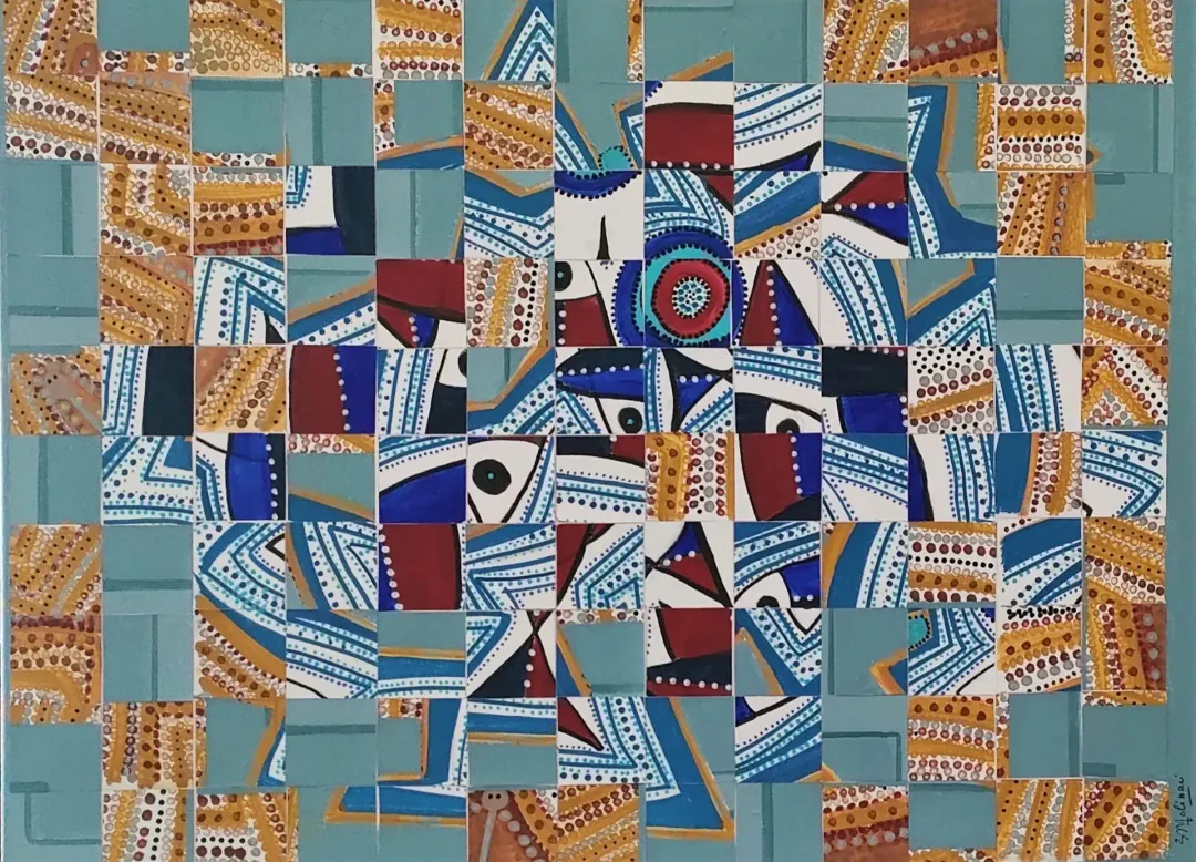 C’est ainsi qu’est née ma technique de toiles découpées puis recomposées, reflet d’un travail instinctif et personnel."