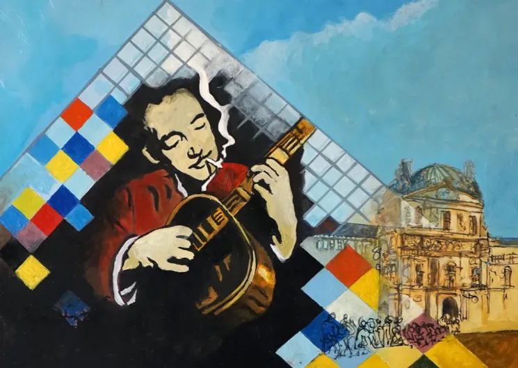Hymne graphique et sensuel aux instruments, voyage guidé d’une guitare dans la peinture, promenade onirique, paréidolie sur de vieilles planches de bois, regard nostalgique et parfois inquiet sur notre anthroposphère