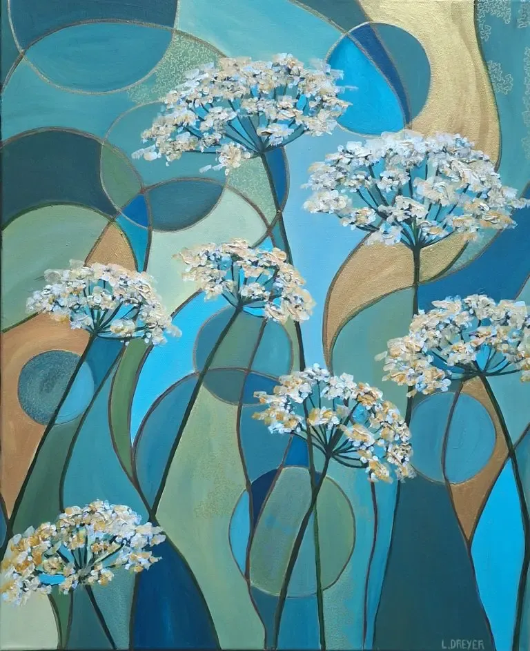 Installée aux Baux-de-Provence, Laura Dreyer explore également le vitrail et la sculpture, mêlant sensibilité, poésie et fascination pour la nature et les courbes féminines.