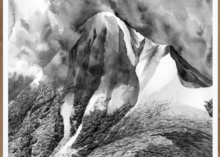 Coline dessine des montagnes depuis son plus jeune âge. La montagne s’est imposée à elle comme un langage : un territoire imparfait, brut, parfois rude, mais profondément vivant. À travers la peinture à l’encre de Chine, elle a trouvé une manière de traduire ce que ces paysages lui inspirent : le silence, la force, l’équilibre entre douceur et aspérité. Son travail s’inscrit dans une recherche de l’essentiel : elle efface toute présence humaine pour laisser place au relief, aux ombres et aux vides.