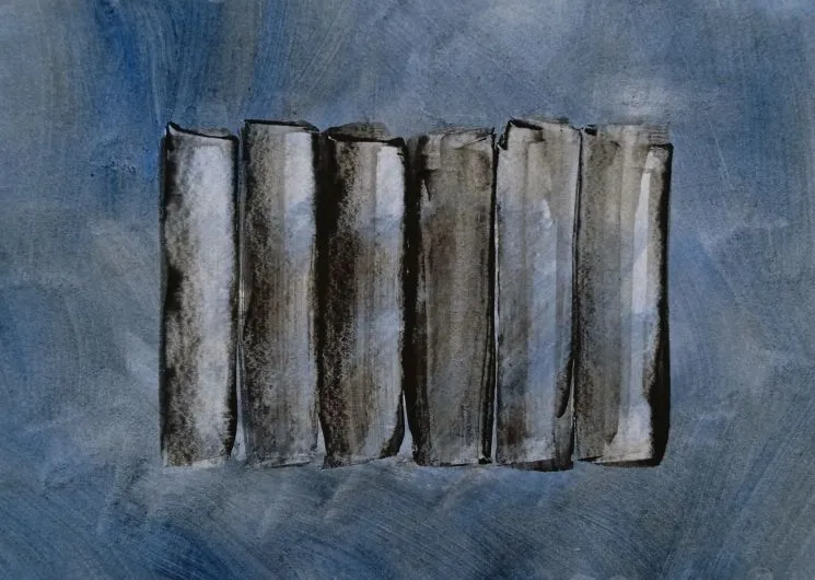 C’est sur support papier que Marie Meynier explore avec obstination ses palettes de couleurs de prédilection. Des bleus, gris, noirs, bruns, ocres et jaunes, pigments ou peinture acrylique, parfois quelques papiers collés, sont déployés dans des séries aux thèmes récurrents : Embruns, Bibliothèques, Abstractions, Fenêtres, Paysages. Inlassablement, de déclinaisons en variations infimes, l’artiste crée son propre langage, trouve une texture toute personnelle, obtenant un subtil et vibrant alliage de tourment et d’apaisement, de vivacité et de douceur, d’ombres et de lumières.